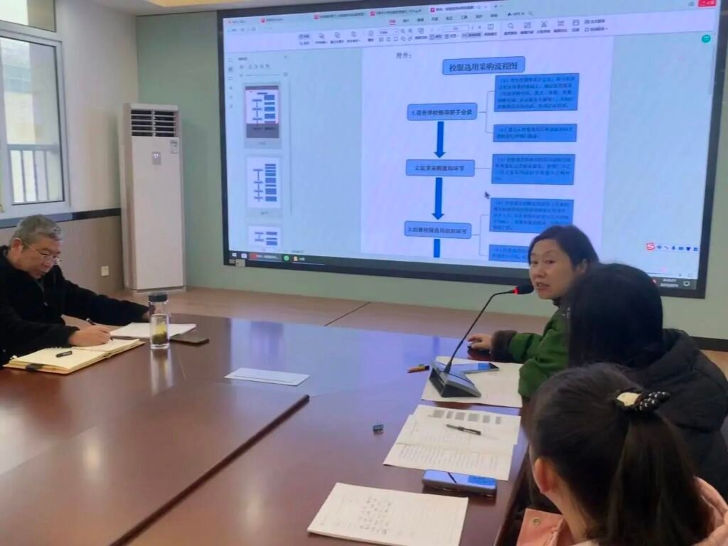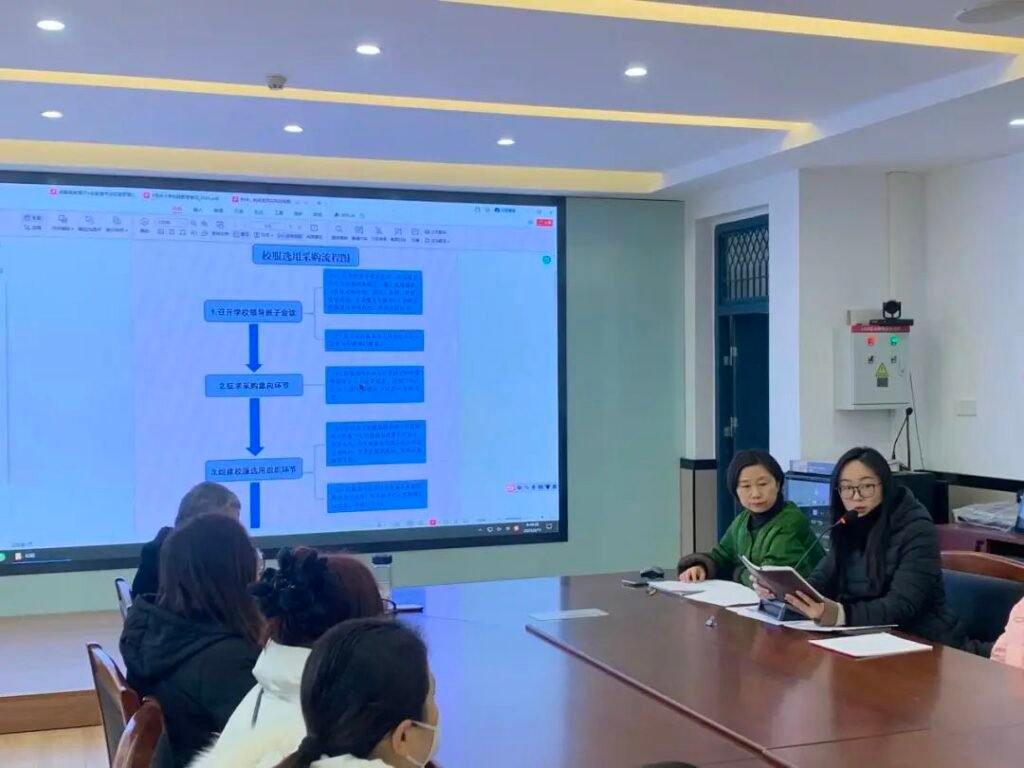 今天议程最重要的一项就是三种校服选用模式中选择其中一种,在程蕾副校长具体介绍三种选用模式后,与会代表们各抒己见,针对学校实际情况以及可操作性展开深入交流。家长代表们特别关注校服的质量和价格,希望能在保证品质的前提下,选择性价比高的产品;学生代表则积极分享自己对校服款式的想法,期望校服既时尚又舒适,能展现当代青少年的青春活力。在大家的热烈讨论后,大家全票举手通过了第一种选用模式,即校服选用组织委托第三方招标代理机构公开招标确定供应商。